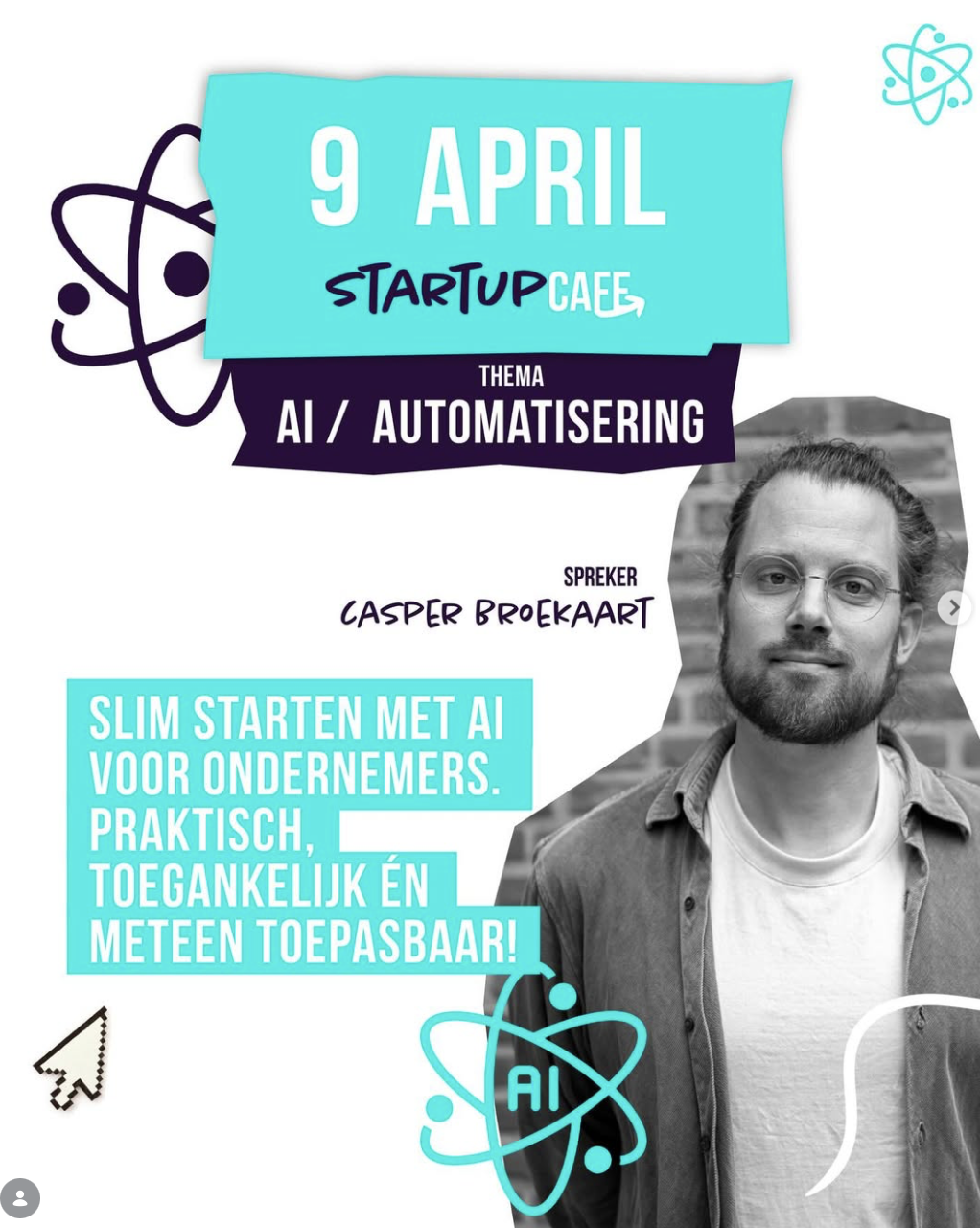 Tijdens zijn workshop “Slim starten met AI voor ondernemers” ontdek je in 60 minuten hoe jij AI direct kunt inzetten voor o.a. marketing, klantcontact en je dagelijkse business.